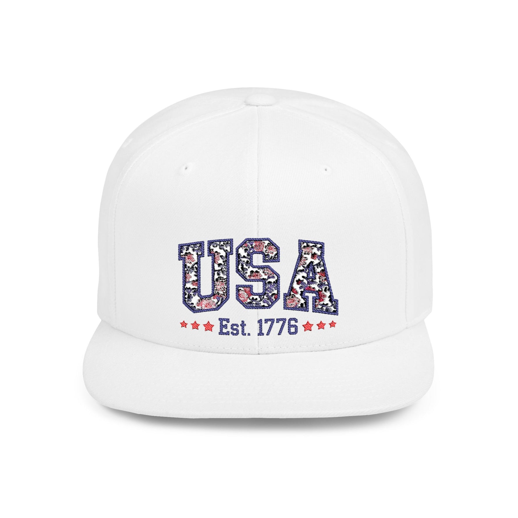 Show off your American pride in style with this bold and trendy Flat Bill Snapback Hat. Featuring a crisp white base and a striking “USA – Est. 1776” embroidery filled with stars and patriotic flair, it’s the perfect accessory to top off any casual outfit. Whether you’re headed to a 4th of July celebration, a summer BBQ, or a weekend hangout, this cap delivers comfort and timeless cool.
