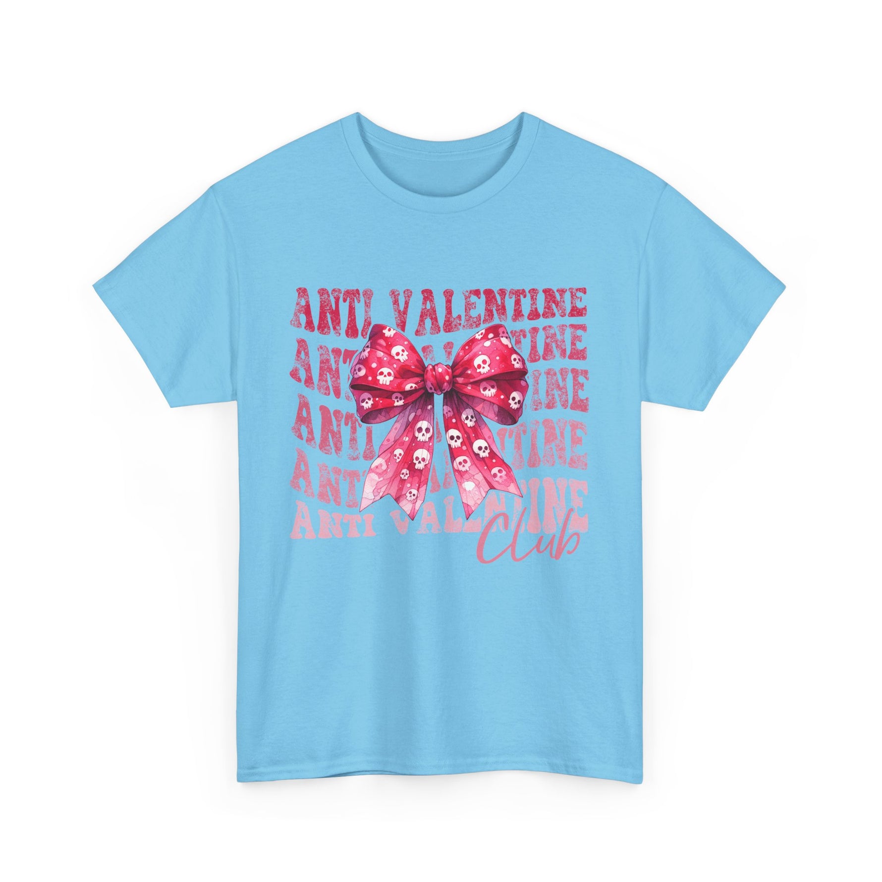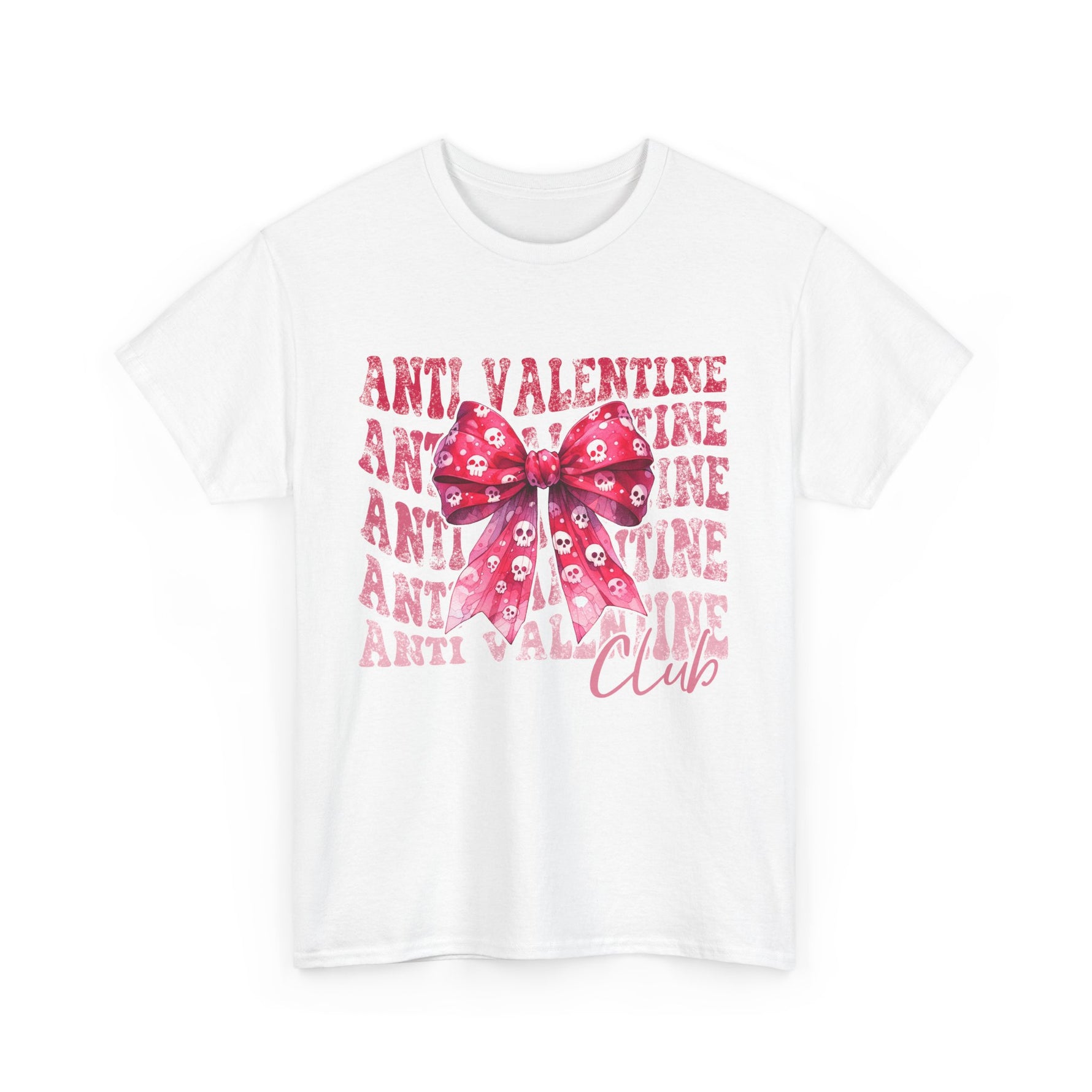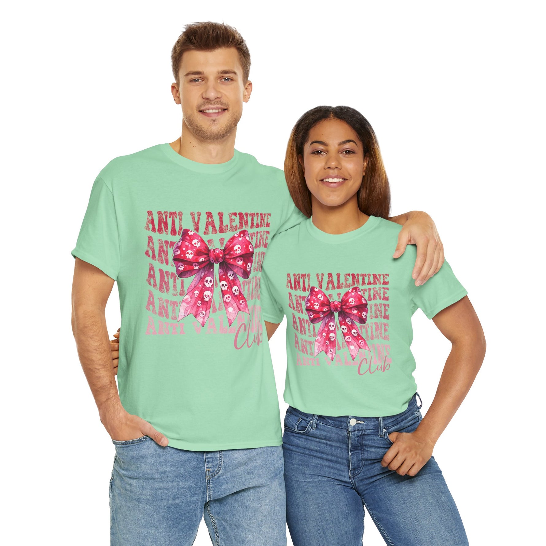 Discover our exclusive Anti-Valentine Unisex T-Shirt. The unique piece features a beutiful red bow adorned with skull decorations that capture a bold and alternative spirit. Perfect for those who want to break away from romantic and express their personal style with an irreverent touch.