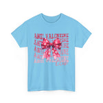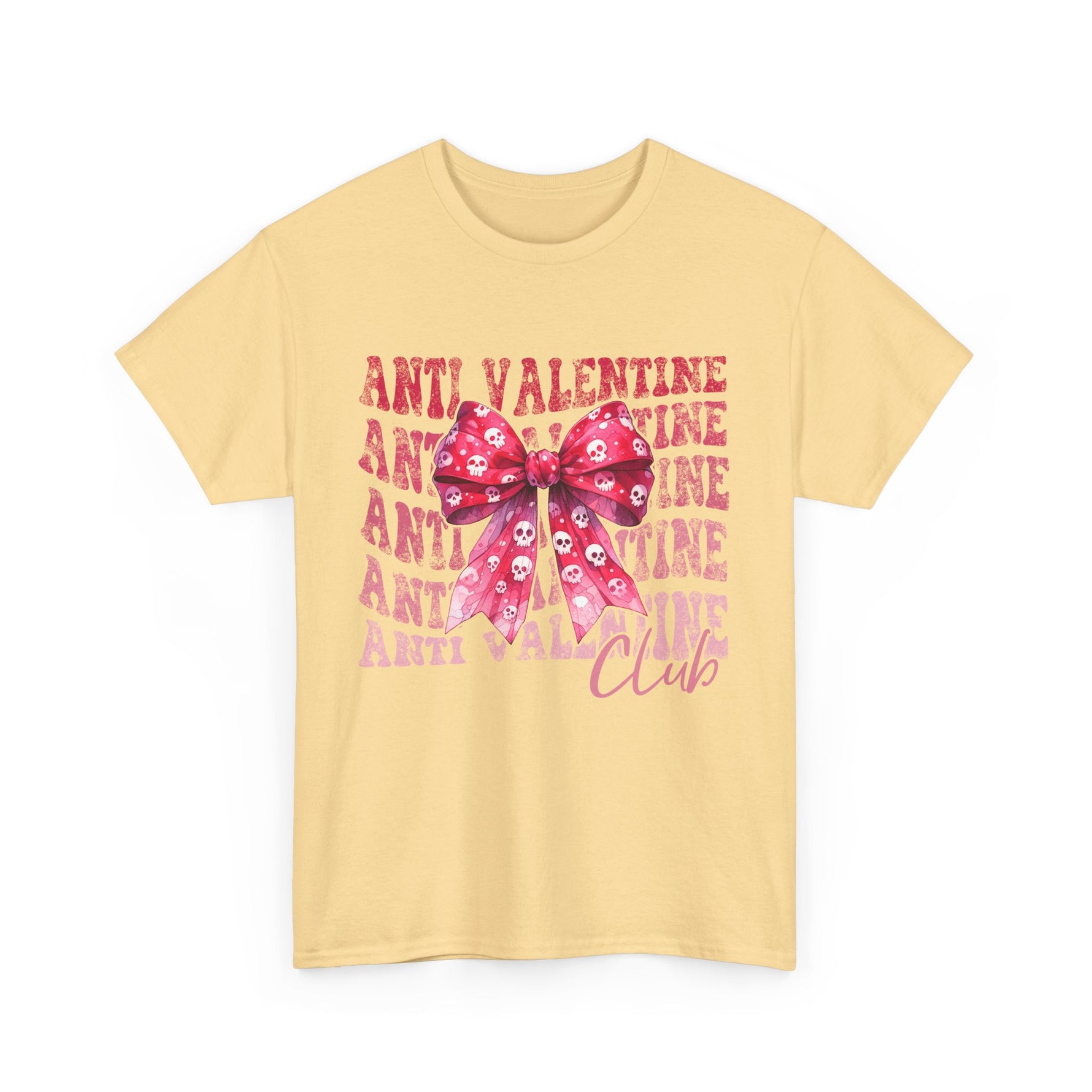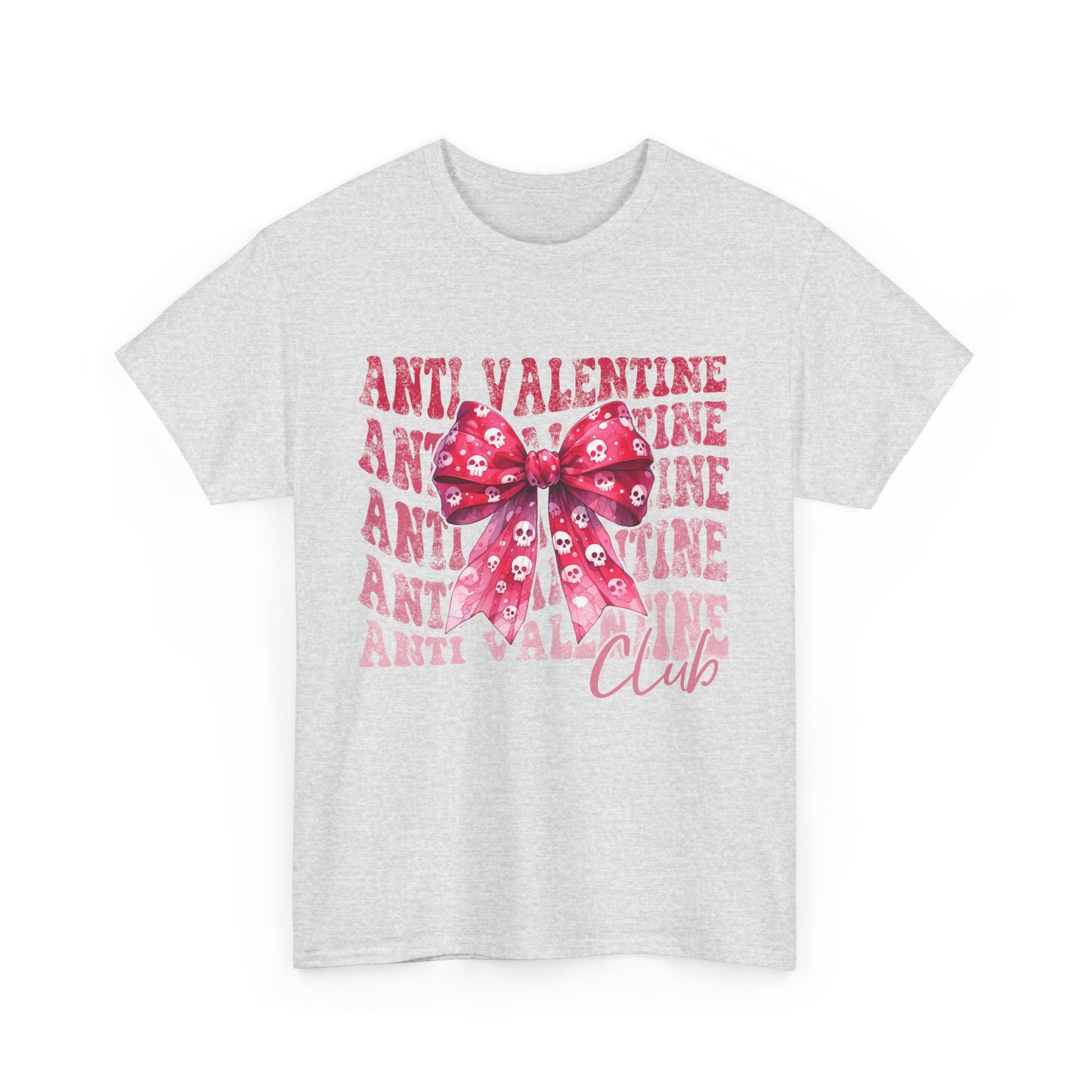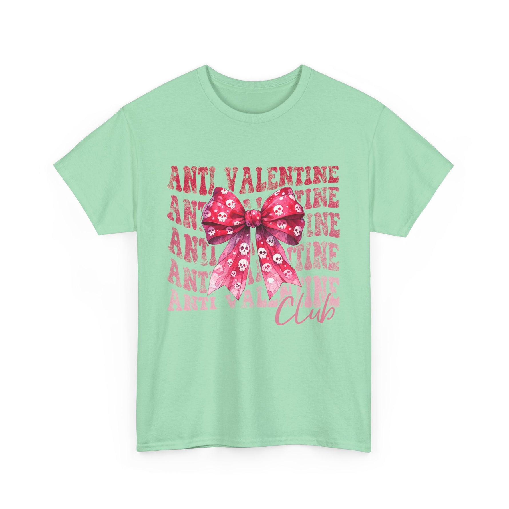 Discover our exclusive Anti-Valentine Unisex T-Shirt. The unique piece features a beutiful red bow adorned with skull decorations that capture a bold and alternative spirit. Perfect for those who want to break away from romantic and express their personal style with an irreverent touch.