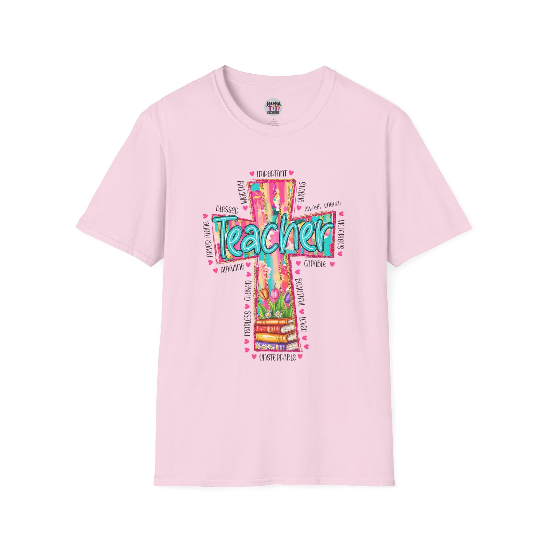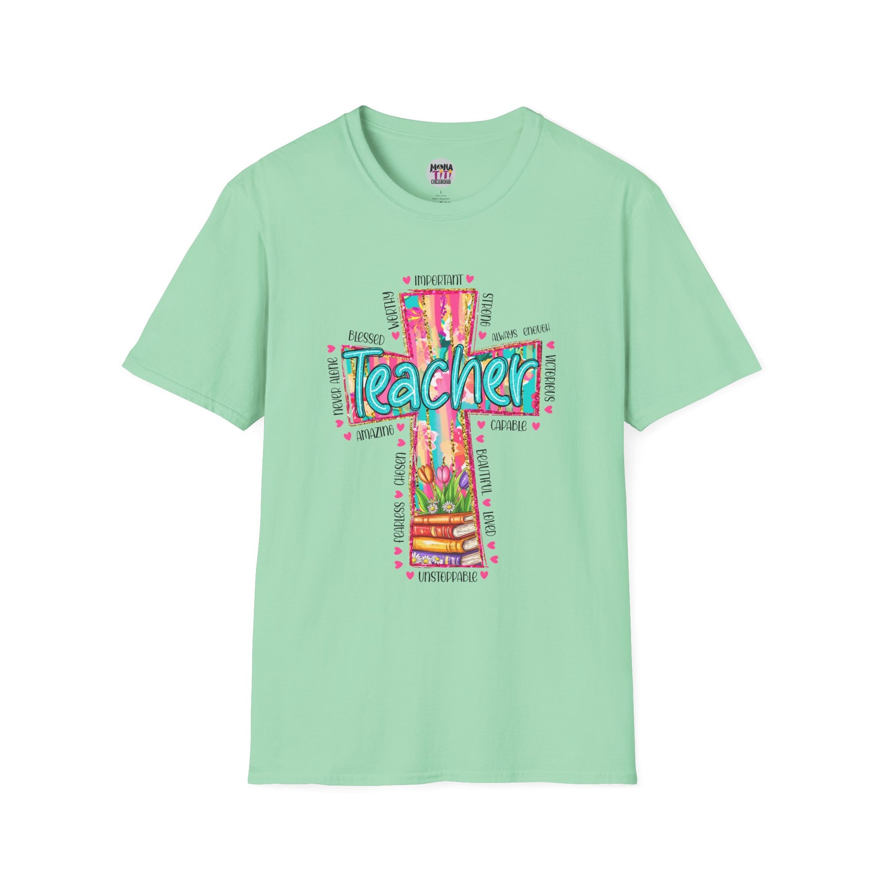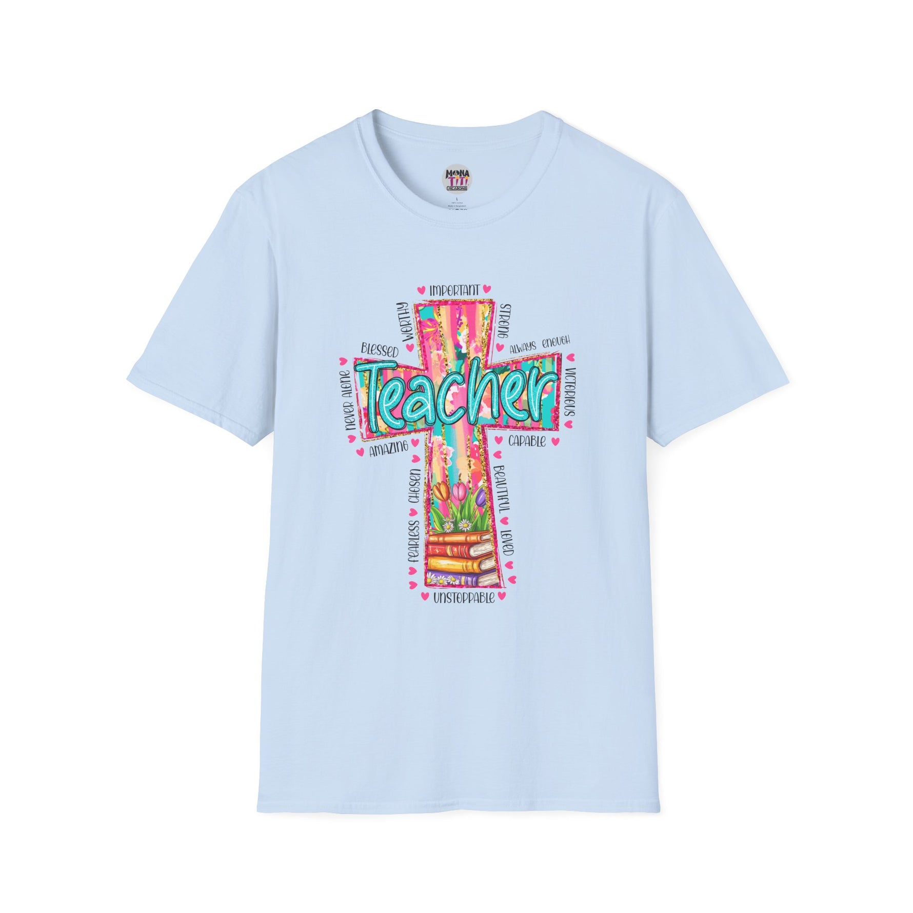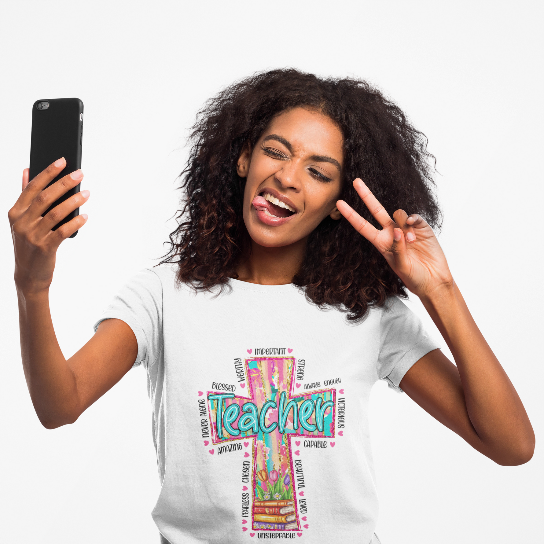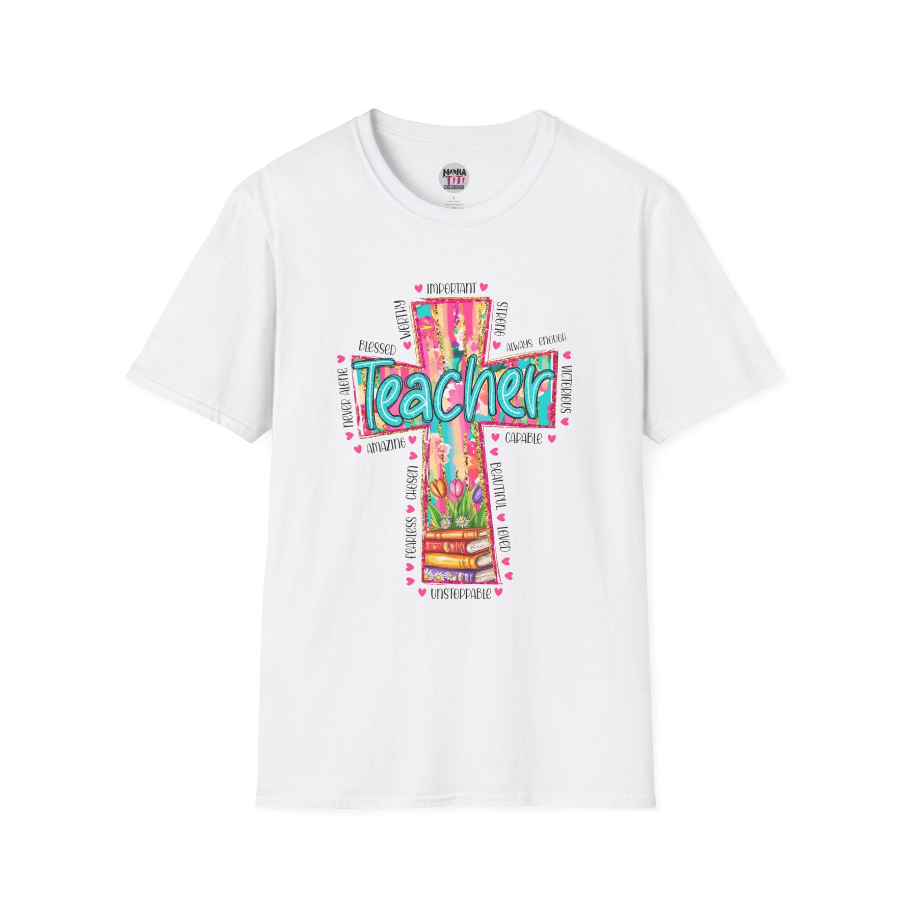 Celebrate the dedication, faith, and passion of your favorite educator with our Inspirational Teacher Cross Softstyle T-Shirt—the perfect blend of comfort, style, and meaning. Featuring a vibrant cross graphic surrounded by empowering words like “Worthy,” “Strong,” and “Unstoppable,” this teacher appreciation shirt makes an unforgettable gift for Teacher Appreciation Day, birthdays, end-of-year celebrations, or simply to say “thank you” in style.