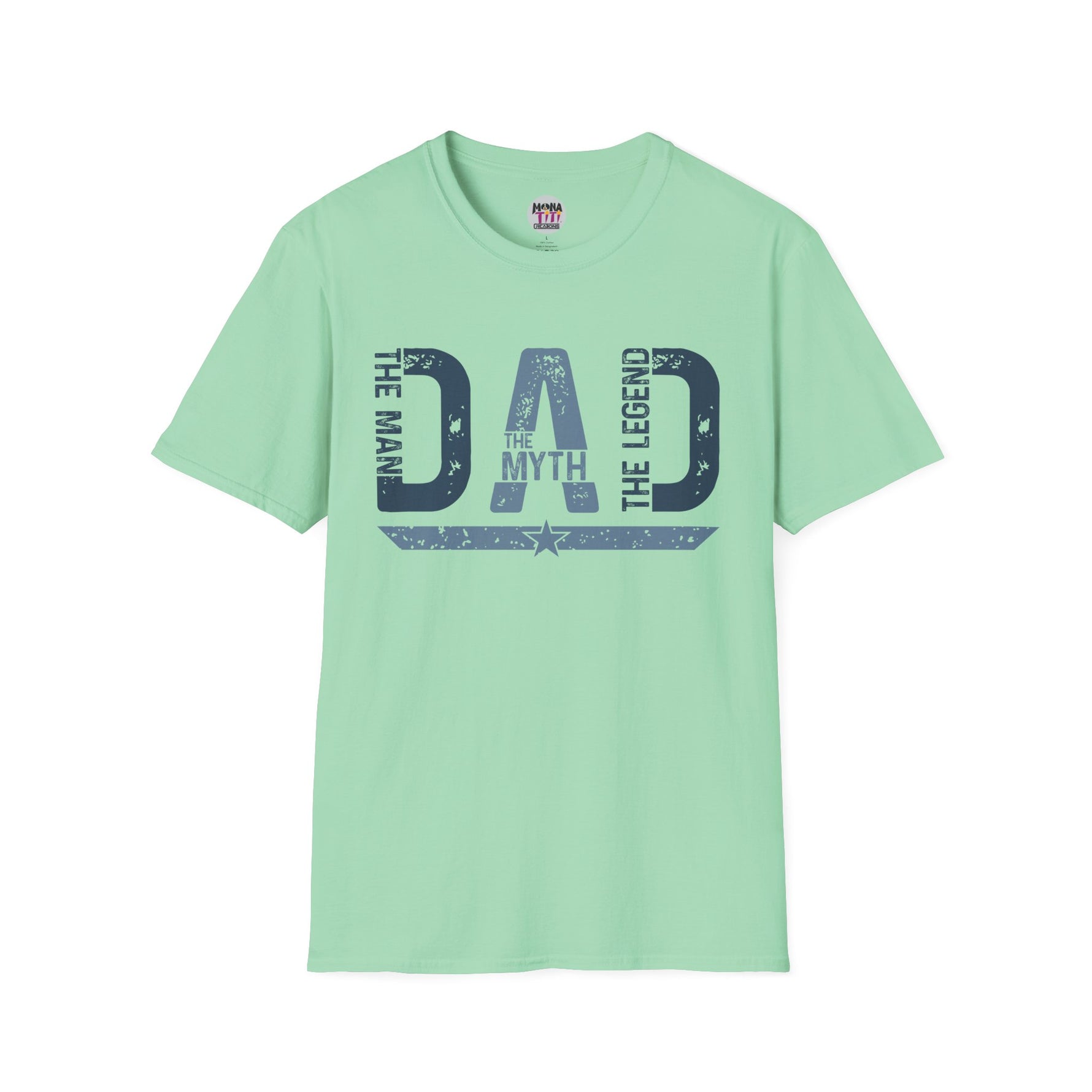 Honor the legendary status of the father figure in your life with this stylish and heartfelt t-shirt. Featuring a bold, distressed design that reads “Dad – The Man, The Myth, The Legend”, this mint green tee combines modern design with a vintage military vibe, making it both fun and meaningful.