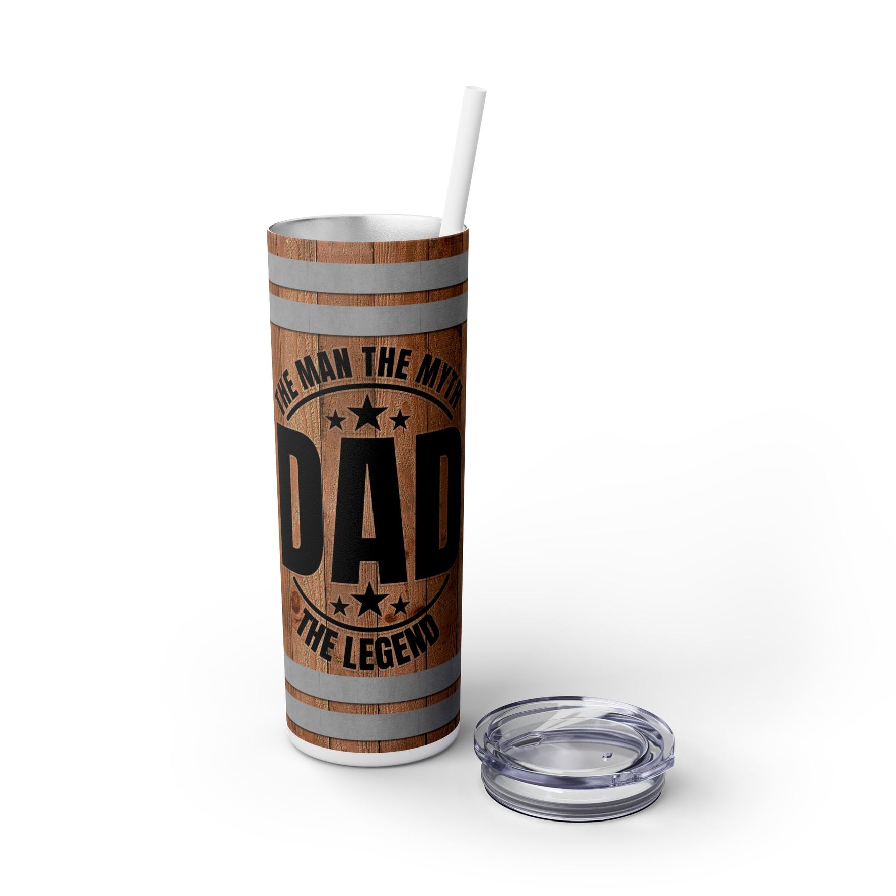 Honor dad in style with this slim, rugged, and bold tumbler that says it all: The Man. The Myth. The Legend. With a design that mimics a classic whiskey barrel, this 20oz tumbler is the perfect blend of function and tribute.